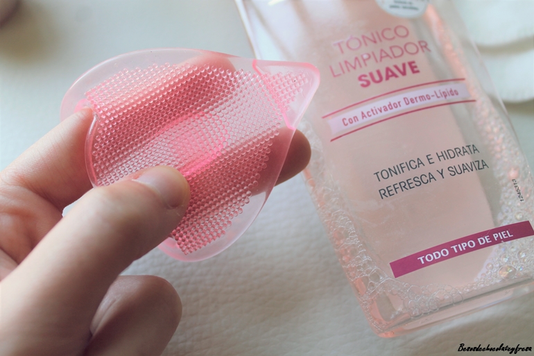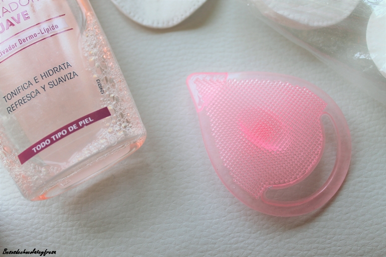 Con forma de gota, la parte delantera está recubierta de micro puntitos que son los que se utilizan para exfoliar. En la parte trasera tiene una agarradera para meter los dos dedos para una sujeción firme. La punta nos servirtá para llegar a esas zonas más difíciles como la nariz.