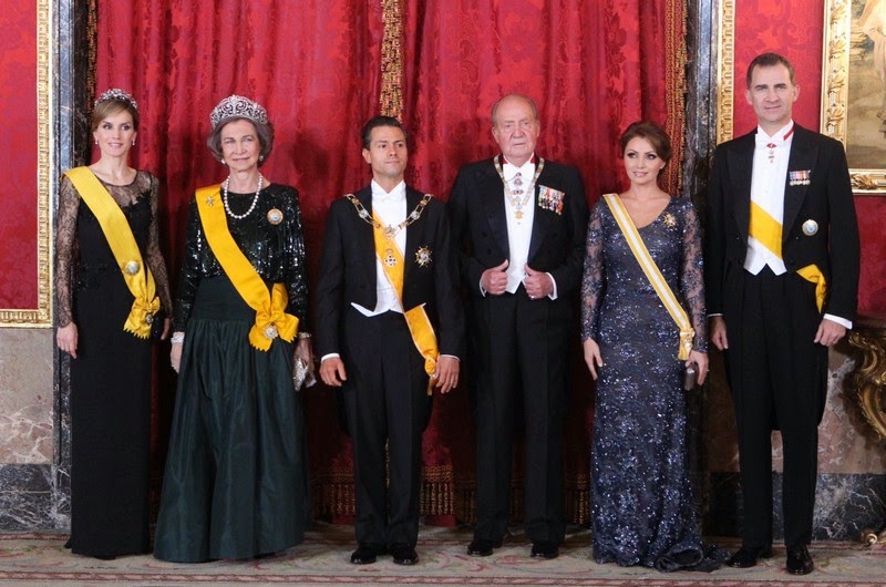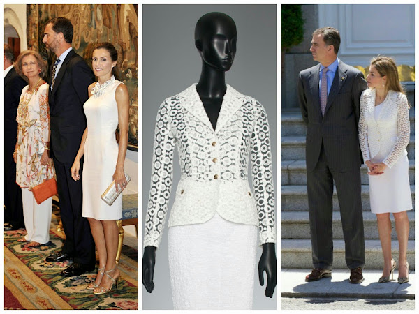 Ha repetido vestido asimétrico blanco de Felipe Varela que ya vimos en la tradicional cena en Palma de Mallorca en Agosto de 2009 y también los zapatos de Carolina Herrera. Lo que estrenaba era la chaqueta en organza bordada de (¿cómo no?) Felipe Varela de esta temporada.