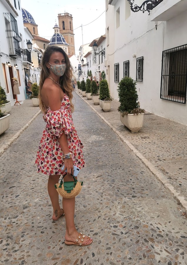 Con la nueva normalidad la mascarilla es obligatoria aunque se puede ir chic y a la vez con ella, esta es de BRK The Family Concept una tienda muy cuqui de Llanes, es muy cómoda y ligera para el calor y lleva filtro.