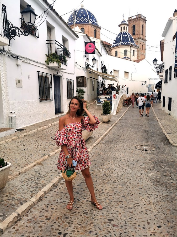 Al fondo podéis ver la Iglesia parroquial de Nª Sra. del Consuelo su cúpula de tejas azules y blancas, que se ha convertido en el símbolo de Altea y de la Costa Blanca.