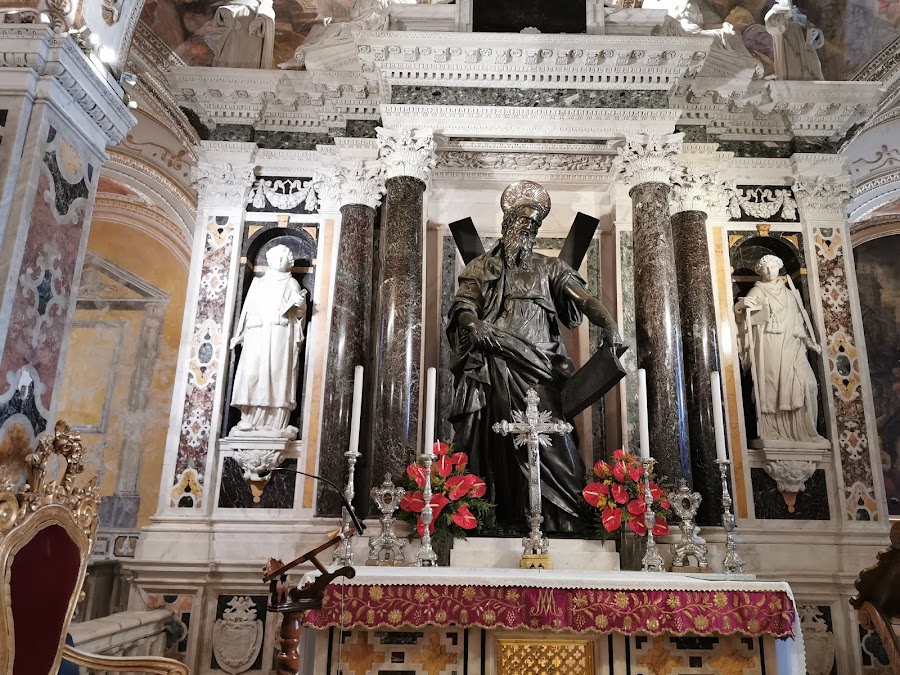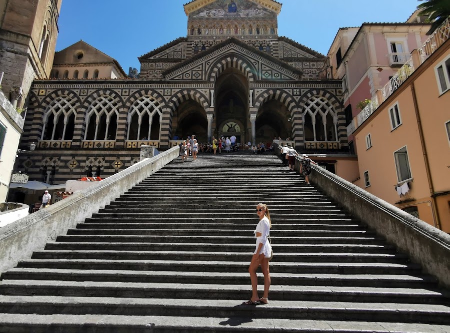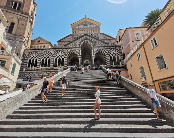 Nada mas acceder al pueblo nos encontramos el Duomo de San Andrea, es el símbolo por excelencia de la ciudad de Amalfi y de toda la Costa Amalfitana. El Duomo de Amalfi en realidad es un complejo arquitectónico que incluye dos iglesias comunicantes, una cripta inferior, una escalera que conduce a la entrada del atrio, un campanario y el Claustro del Paraiso. es precioso y merece la pena verlo por dentro porque es espectacular