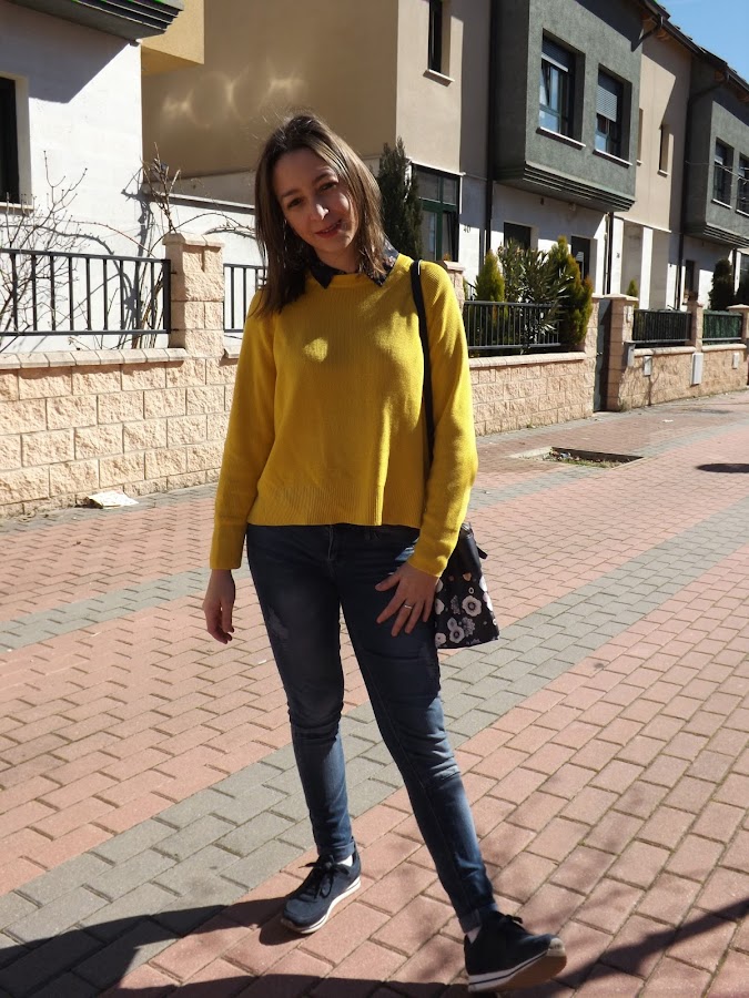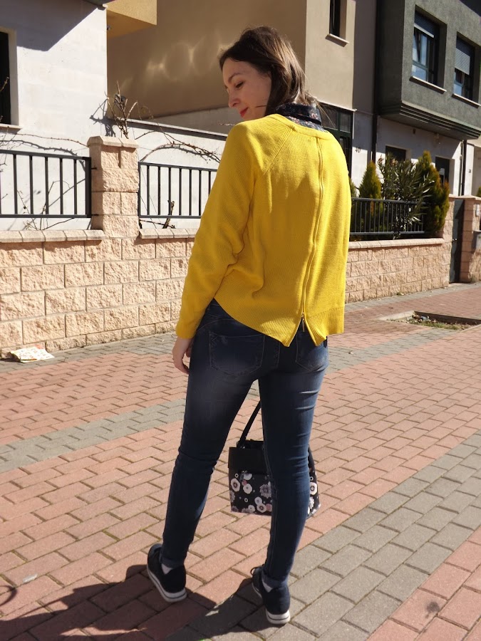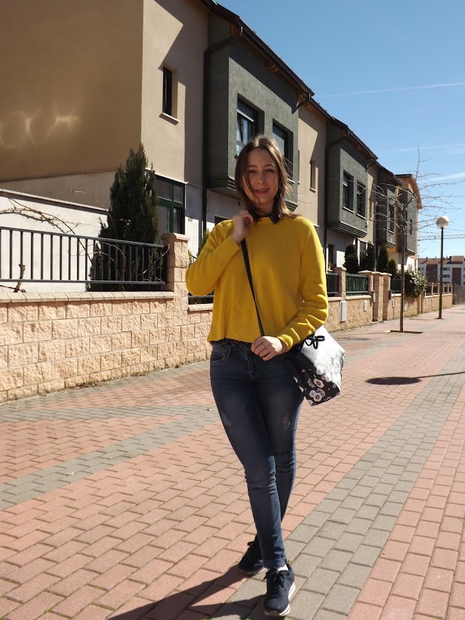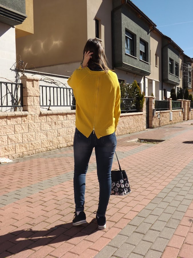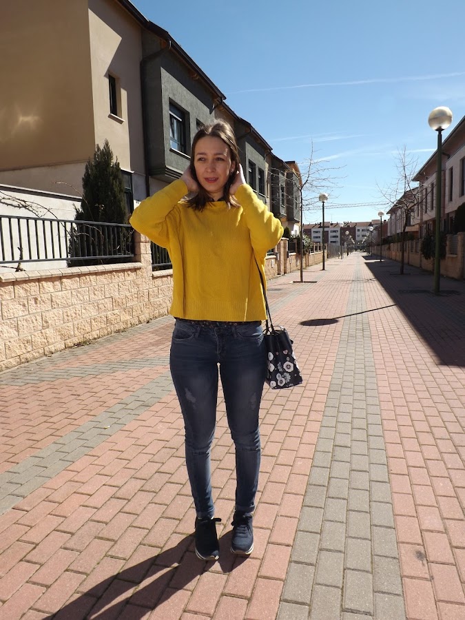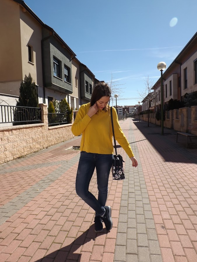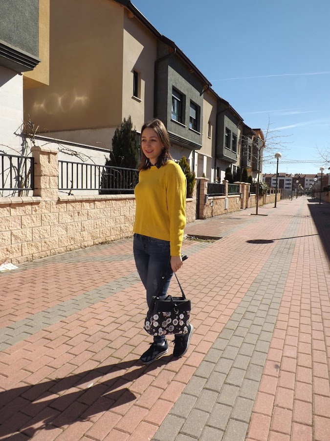 Little by little, we want to fill our outfits with more springy and cheerful colors and I think this sweater is perfect for it. The bag, with its flowers also helps to create a more springy look.