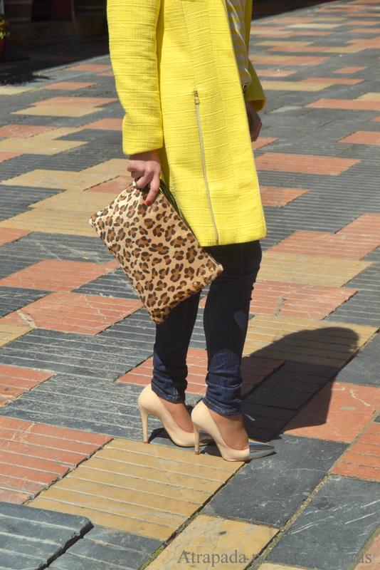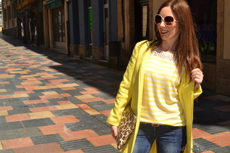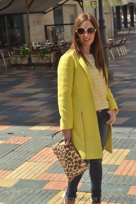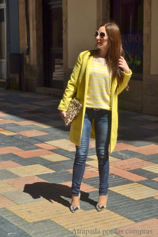 Para el look de hoy escogí un abrigo amarillo de VILA, una camiseta de rayas blancas y amarillas también de VILA, ya sabéis que las rayas causan furor, me encantó el detalle de la parte superior, me pareció muy original y diferente a lo que se suele ver por ahí. Como contrapunto el bolso y el cinturón para los que opté por el animal print. Qué os parece?
