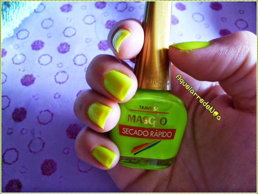 Y como no podía haber coincidido mejor, este viernes me llegaron mis primeros esmaltes de la marca Masglo y el Traviesa es un bonito colo amarillo fluor...con lo cual..te ha tocado!!