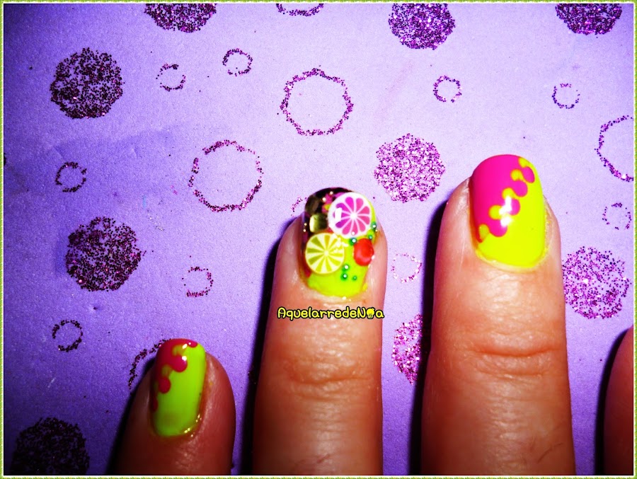 y bueno aqui esta mi mani amarilla, y también la primera vez que hago una mani tan recargada.. con solo decir que me pesaba hasta la uña...