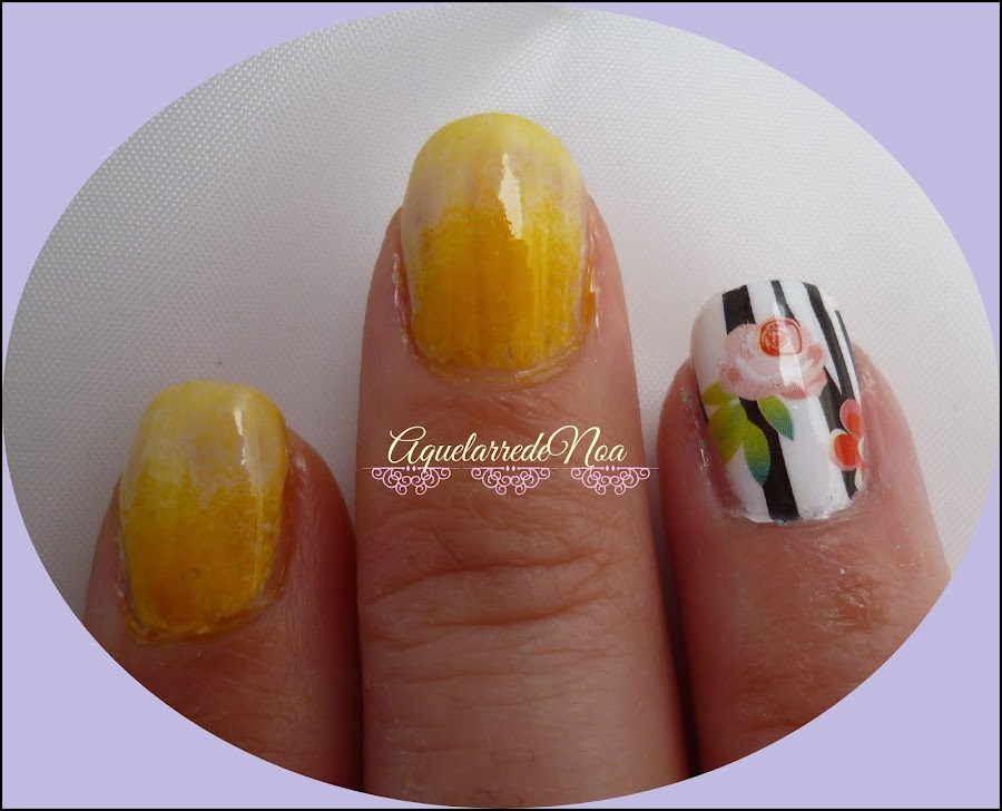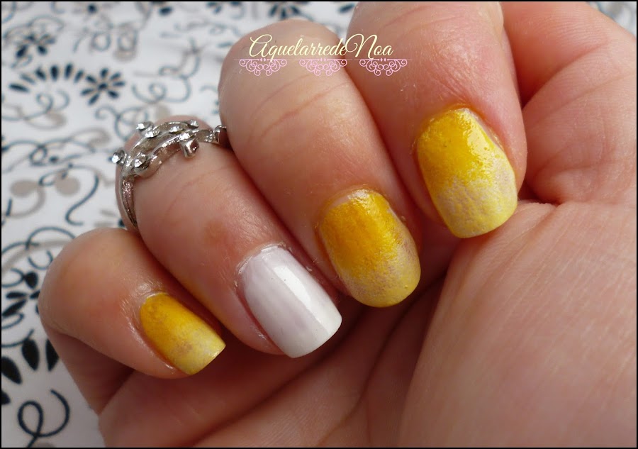Continuamos con un degradado a esponja con los dos tonos de amarillo.