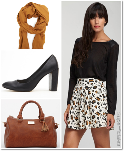 Es entonces cuando he buscado su web para ver la colección de otoño. Pensaba que me iba a encontrar con un estilo muy clásico o quizá más formal, pero en cambio he descubierto prendas que vienen fenomenal para llevar a la oficina. Como este look formado por pashmina, salones, bolso bowling, camisa y falda.