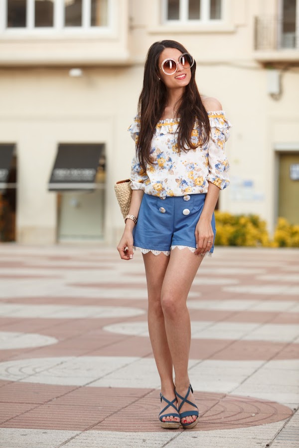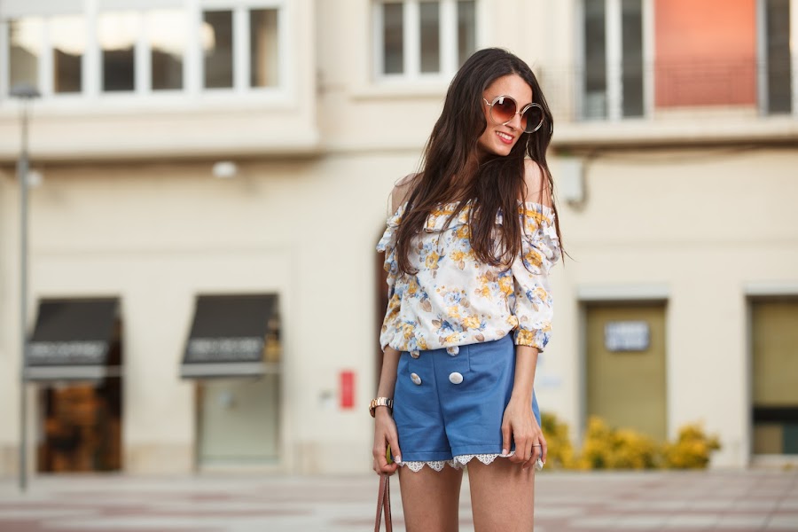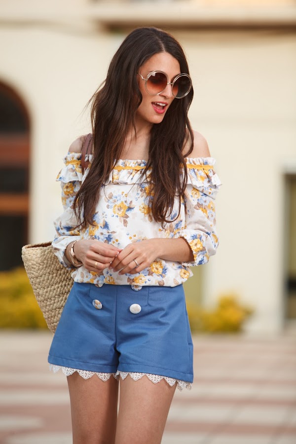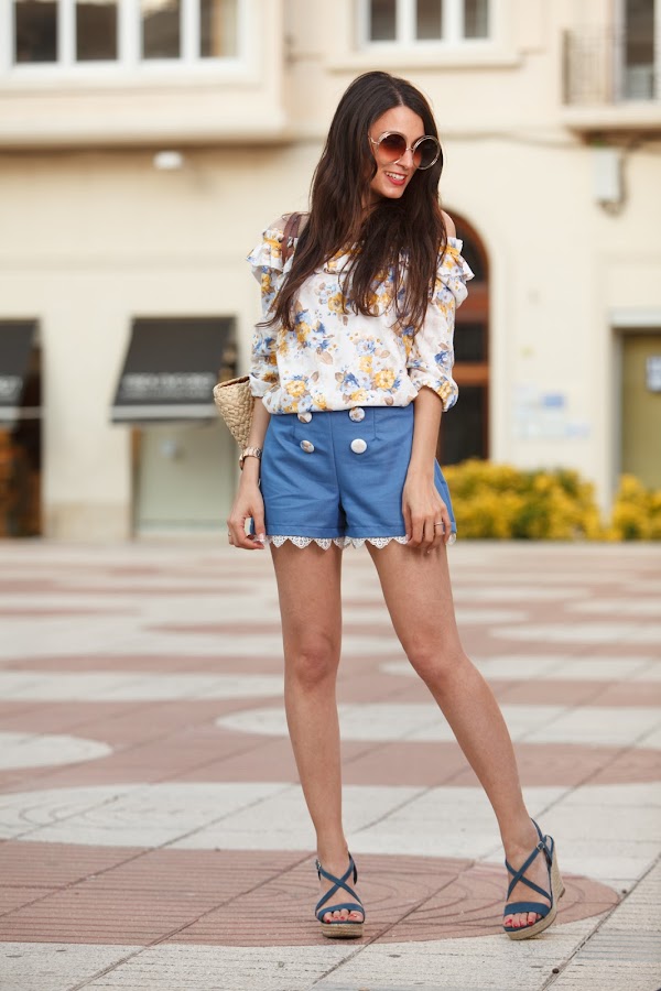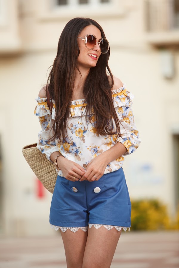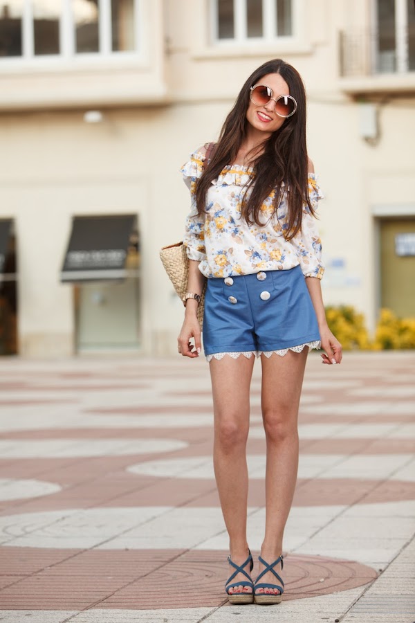 Hoy os dejo otro precioso conjunto de PRETTY & CHIC VIGO. ¡Tienen cosas preciosas! La blusa de flores con volantes junto con el short con los botones forrados del mismo estampado me enamoraron nada más verlos. ¡¡Ya sabéis que los estampados florales me vuelven loca!!