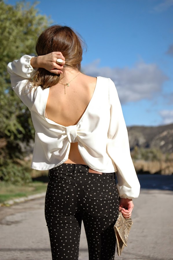 Por otro lado, esta semana he tenido la suerte de poderme hacer con uno de los tops de la marca Belicci, son una pasada, originales, muy elegantes y femeninos y con el punto fuerte que tanto me gusta (los que me conocéis ya lo sabéis), el escote trasero. Las mangas son bellísimas, más amplias en la muñeca. El lazo que forma en mitad de la espalda es el punto más fuerte y bonito.