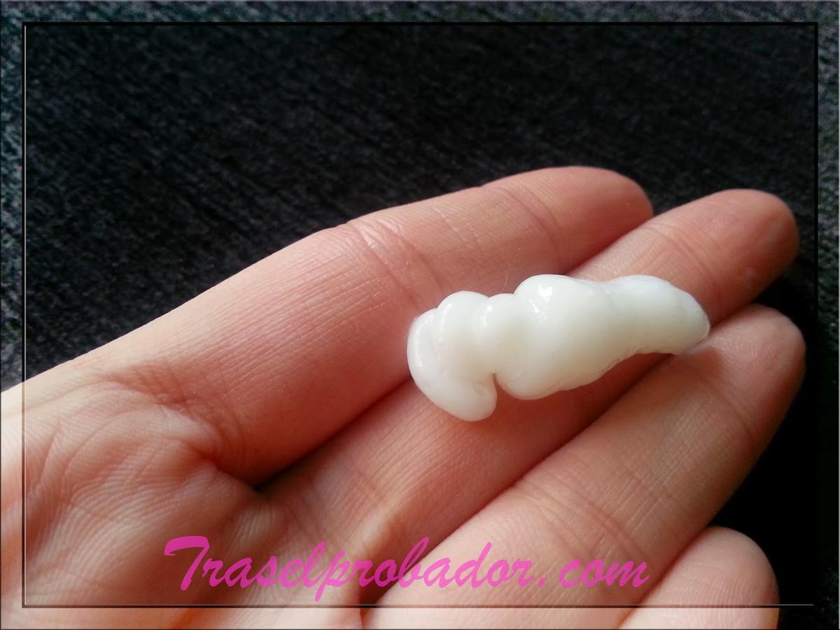 La crema blanquecina que encontramos dentro tiene un perfume muy rico, frutal y dulce.