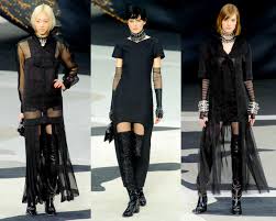 Refleja en su colección a una mujer moderna con aire punk. Se repite el color negro y gris. Chaquetones con cuellos altos y largos a media pierna. Botas de caña muy alta.