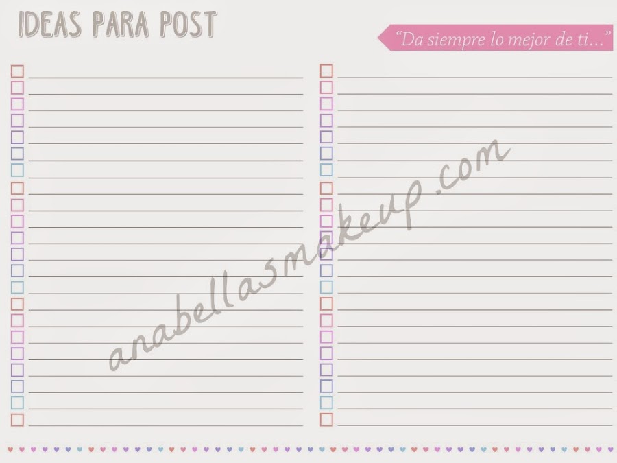 Eso es todo por ahora con respecto a la agenda, si tienen alguna duda, pueden hacerlo debajo de este post, o escribiéndome a mi correo anabellasmakeup@gmail.com. Espero les guste y disfruten esta agenda. Besos ?