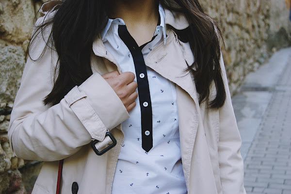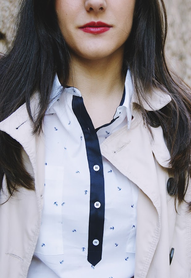 Anclas. Antes no me llamaban nada la atención, pero últimamente me paro ante cualquier prenda que tenga anclas. Eso es lo que me pasó con esta camisa de Zara. La vi, vi sus anclitas azules y me enamoré. Flechazo. Inmediatamente super que esa camisa y yo nos pertenecíamos, que el destino nos había hecho coincidir en el mismo espacio y el mismo tiempo en esa tienda por una razón. Así que hice caso al destino.