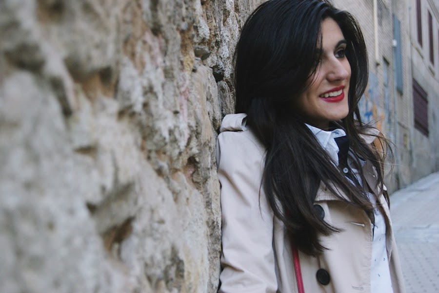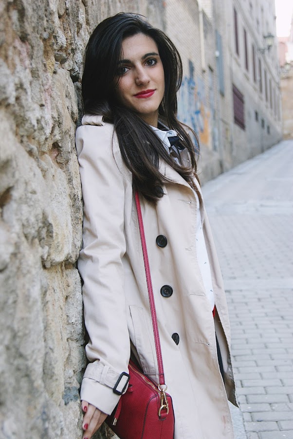 La estrené el día del evento Sephora Night con un outfit de inspiración preppy que era perfecto para el tiempo de frío y lluvia que estaba haciendo. La combiné con unos leggings, una chaqueta roja, unos botines y un trench. Resultó una combinación muy adecuada para estos días de transición en los que no sabemos si pasaremos frío o calor.