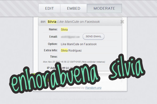 Antes de nada, quería agradeceros a todas la enorme acogida que ha tenido el sorteo. Cuando lo hice fue sobre todo, pensando en todas aquellas personas que habíais logrado que ManiCute siguiera adelante, con vuestros comentarios, likes, y demás... ¡¡Pero es que ahora hemos formado una gran familia!! Todavía no me lo creo, este sorteo empezó como el de los 100 seguidores, y se cierra con casi 200. ¡Una locura!