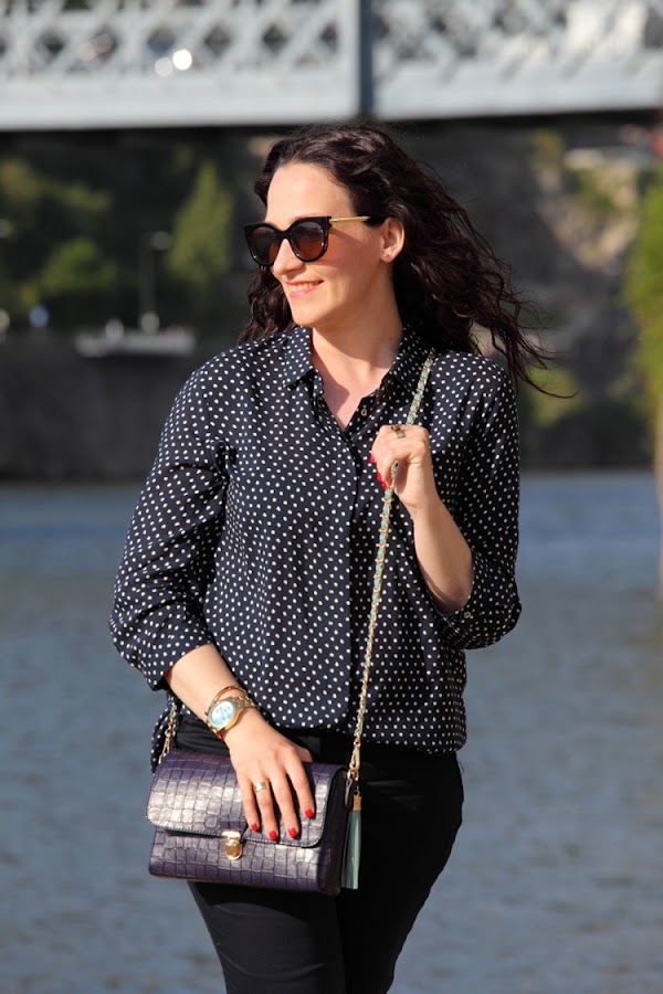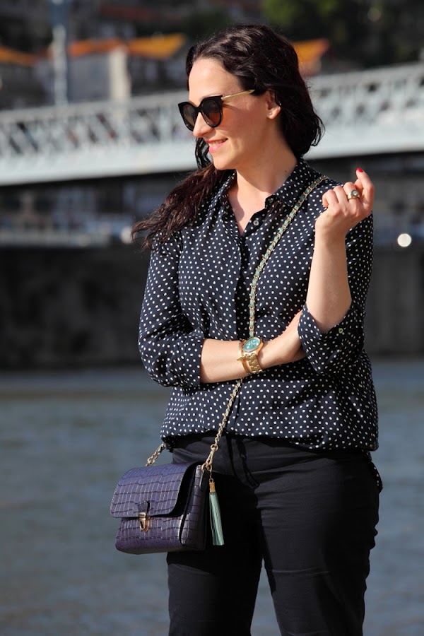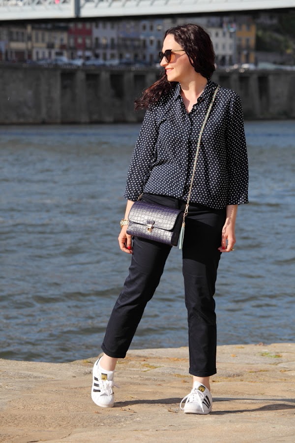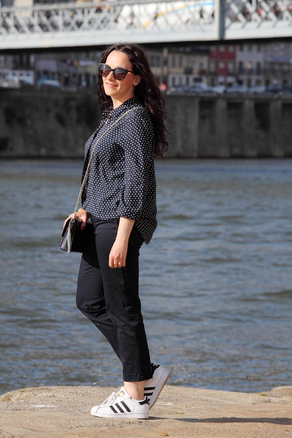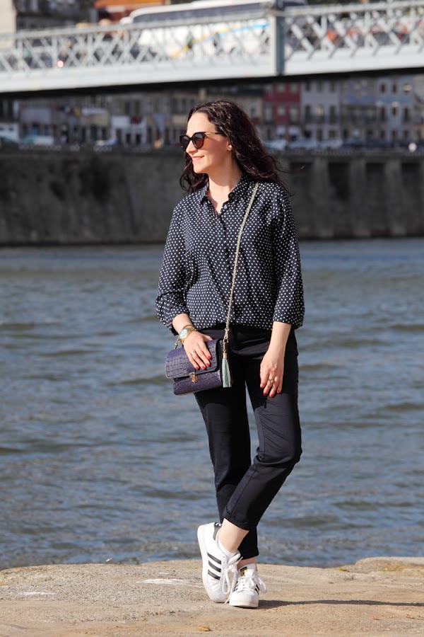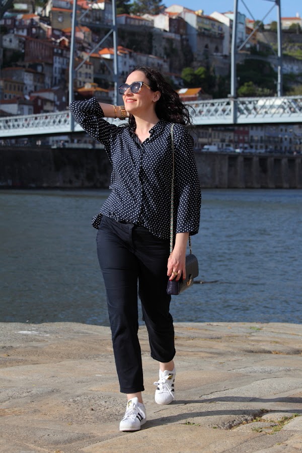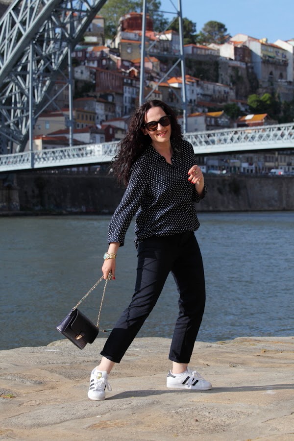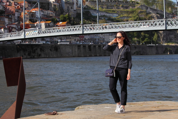 Sin darme tan apenas cuenta ya han pasado casi tres meses de mis vacaciones en Portugal, cada vez me asusta más pensar en lo rápido que pasan los días. Han pasado tan deprisa que todavía me quedan fotos por enseñaros de mis días descubriendo este bonito país. Hoy os traigo las fotos que hicimos con uno de los looks que llevé en Oporto. Aprovechamos para fotografiarlo con el precioso puente Don Luis I de fondo, uno de mis lugares preferidos de la ciudad. Como siempre llevé un outfit muy cómodo con camisa de topos, pantalones capri y en los pies mis queridas Adidas Superstar. Me resultan muy cómodas, aunque reconozco que como las Nike Kaishi Run no hay ningunas como puede comprobar en este viaje.