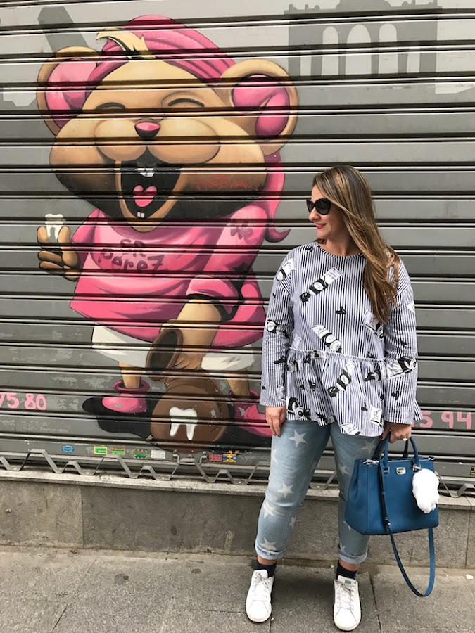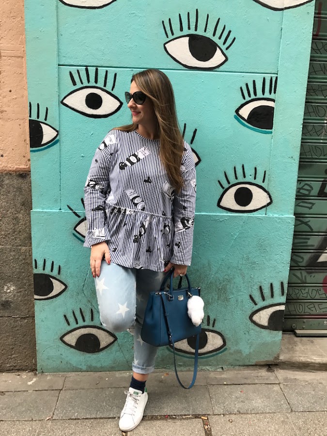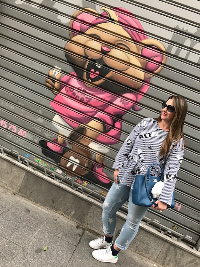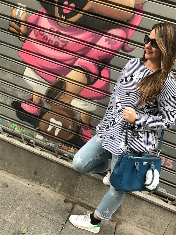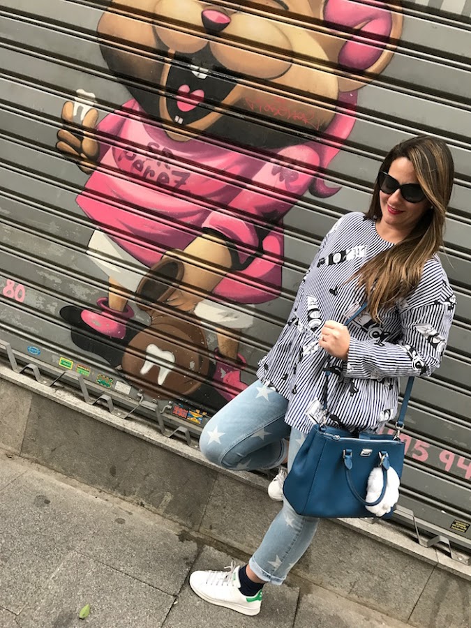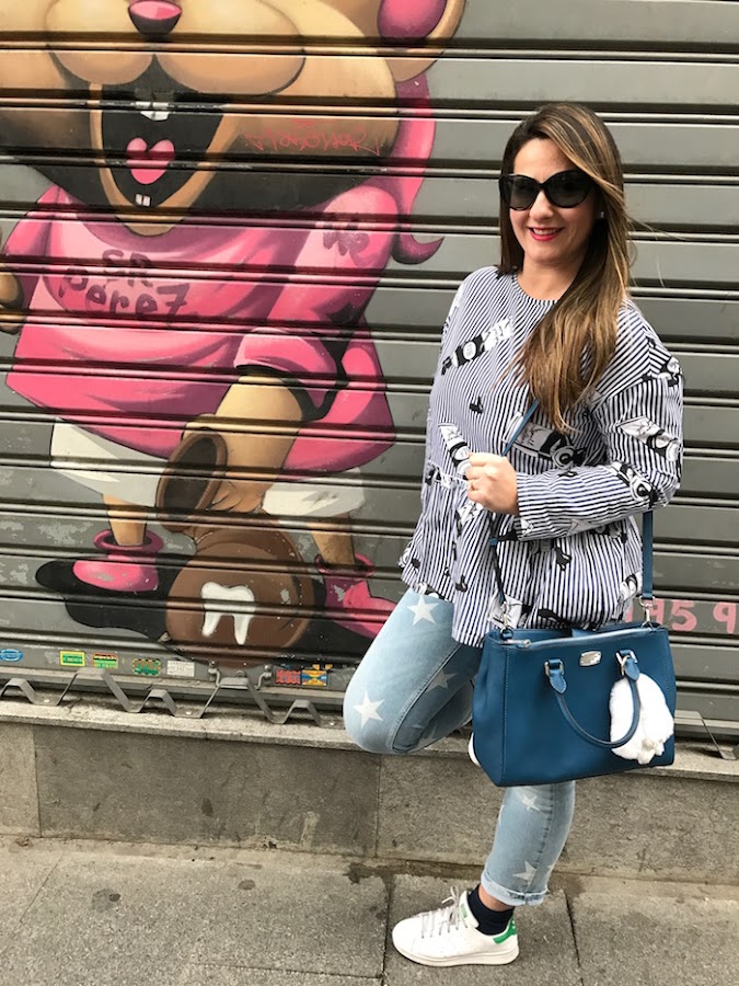 Hoy traigo al blog un look sport formado por jeans con estampado de estrellas y blusa con estampado de Andy Warhol, ideal para días en los que nos faltan horas para hacer mil recados. Hay que ir cómoda pero siempre chic, ya lo sabéis. Adidas Stan Smith para completar el look y uno de mis nuevos bebés Michael Kors que traje de mi viaje a NYC.