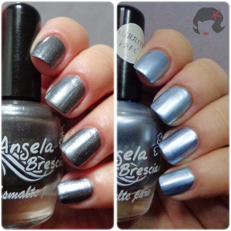 Un esmalte raro, o sea, me gusta, como verán en las fotos queda precioso, pero la terminación tan, pero tan mirror me pone nerviosa, eso si, estampa divinamente, todos los Mirror de Angela Bresciano estampan!!!