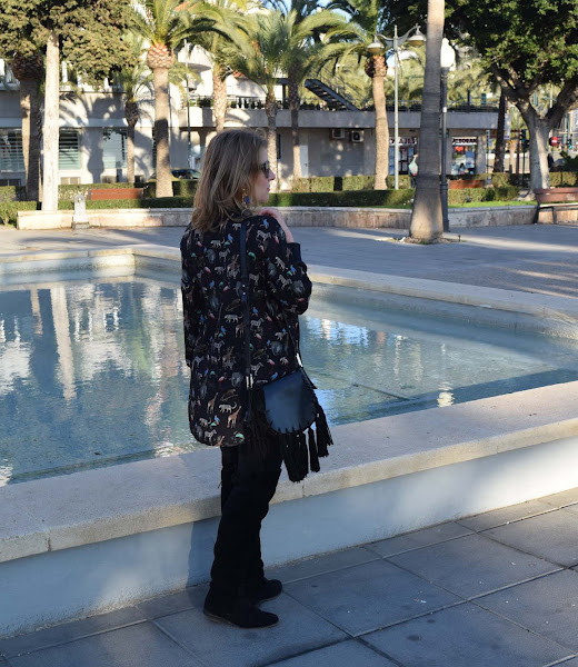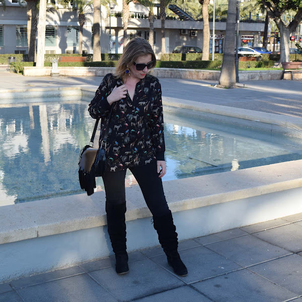 Además es un look ejemplo perfecto de no gastar mucho para ir a la última. Salvo la blusa nueva, todas las prendas llevan en mi armario un mínimo de tres años, ese fondo de armario que he ido creando y modificando poco a poco (como el caso de las botas mosqueteras, un bolso de piel...) Complementos que aderezan cualquier look.