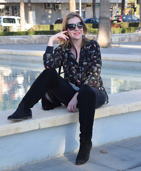 La base de la camisa en negro me facilitó la elección del resto de prendas. Se puede arriesgar mucho más, pero para un paseo en familia, me apetecía estar sobre todo cómoda.