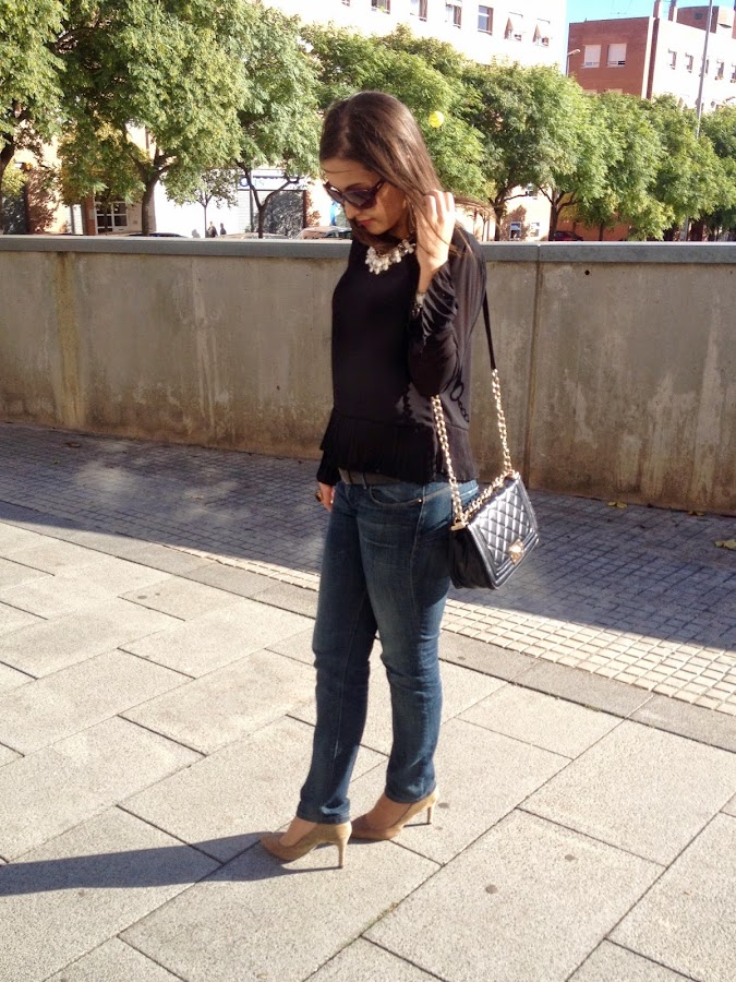 ¡Buenas noches amores! Último post de la semana, en el que os muestro el look que lleve el sábado pasado para ir a cenar con mi pareja. Me puse unos jeans y mi nuevo crop de top de volantes de Shift Store. Lo combiné con un abrigo de animal print y mi inseparable bolso estilo Chanel. Un look ideal para ir arreglada el fin de semana.