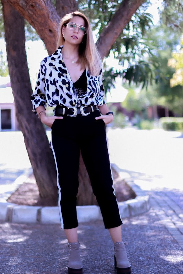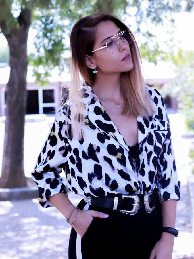 y bueno no me enrollo más porque hoy traigo un look súper chulo. Os juro que nunca me ha gustado el animal print, nunca. Pero este año me he hecho adicta! De hecho, esta blusa es una de mis favoritas, con un estampado de leopardo, pero diferente al que siempre solemos ver. Además, me gusta mucho el tacto de la tela, que es parecido a la seda pero no llega a serlo... no sé, pero me encanta!! Es de JESSICA BUURMAN.