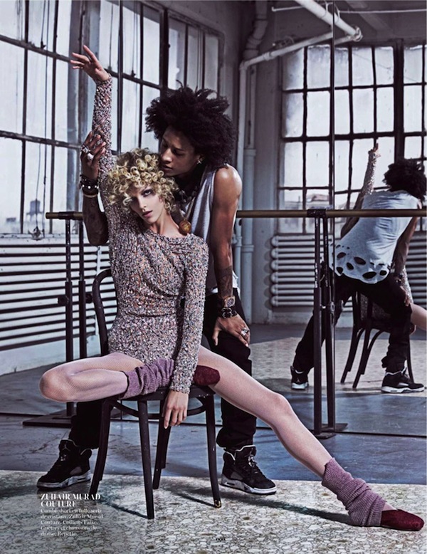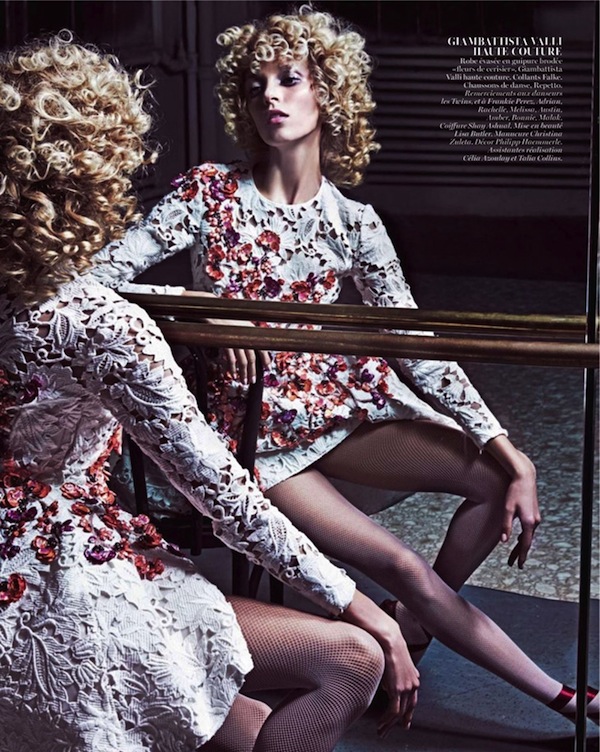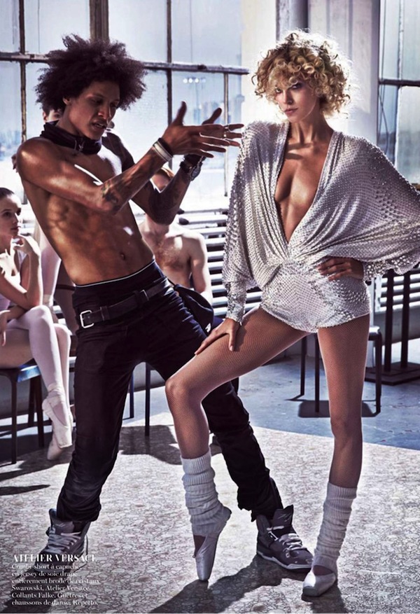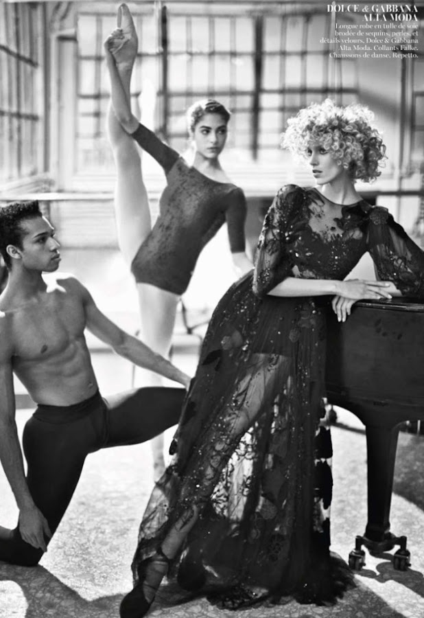 La modelo luce diferentes modelos uniendo Ballet y Alta Costura, con firmas como Valentino, Dolce & Gabanna unos que son unos enamorados de la danza como ya vimos en un anterior post , Giambattista Valli, Zuhair Murad, Victor&Rolf a los que les encanta la mezcla de moda y danza como vimos en la entrada que hice de su desfile de Paris 2014, Gauthier Paris que diseño para el Ballet Blanche neige, Georges Hobeika, Versace que diseño para el Ballet de Mourice Béjar