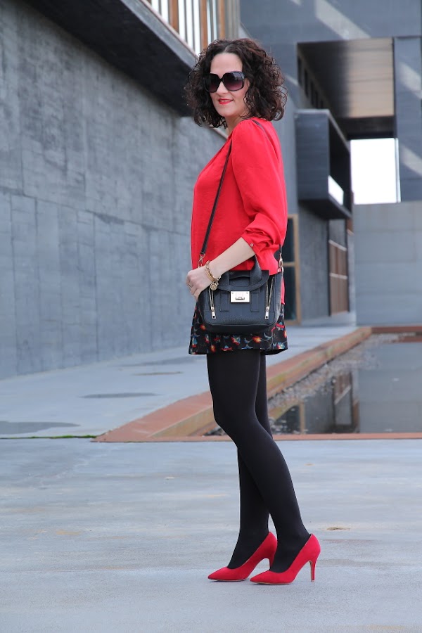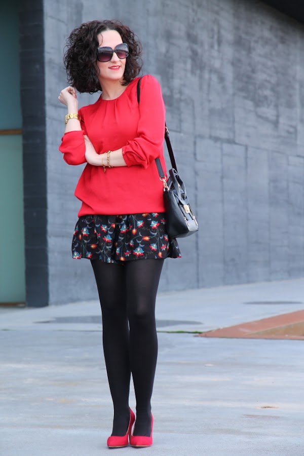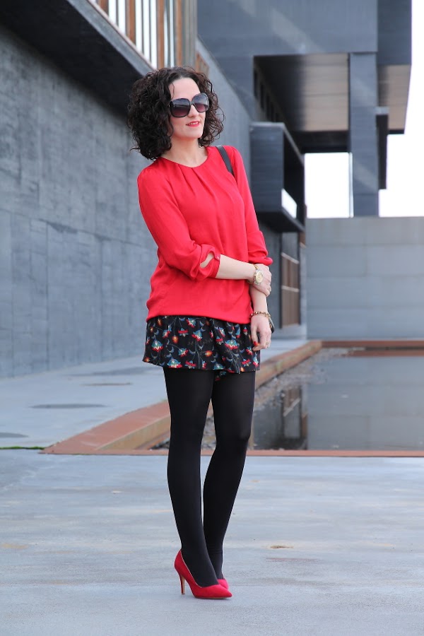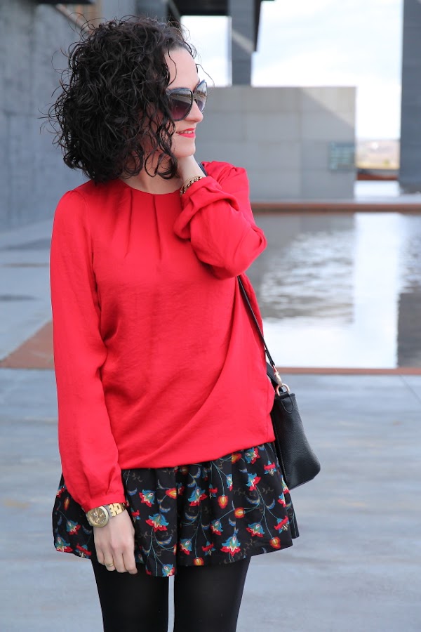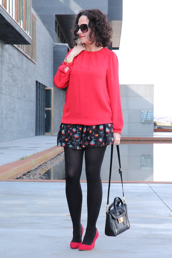 Hace unos días os enseñé aquíesta falda-pantalón en un look más casual con camisa demin, hoy la llevo con un estilismo más arreglado en tonos rojos. Cada vez me estoy aficionando más a utilizar los rojos porque me gusta mucho como quedan con mi tono de piel.