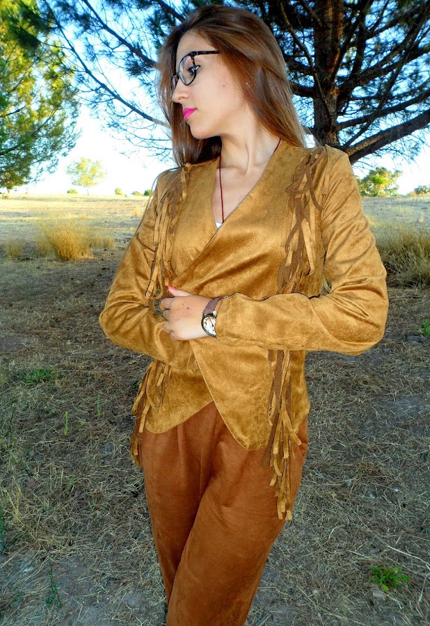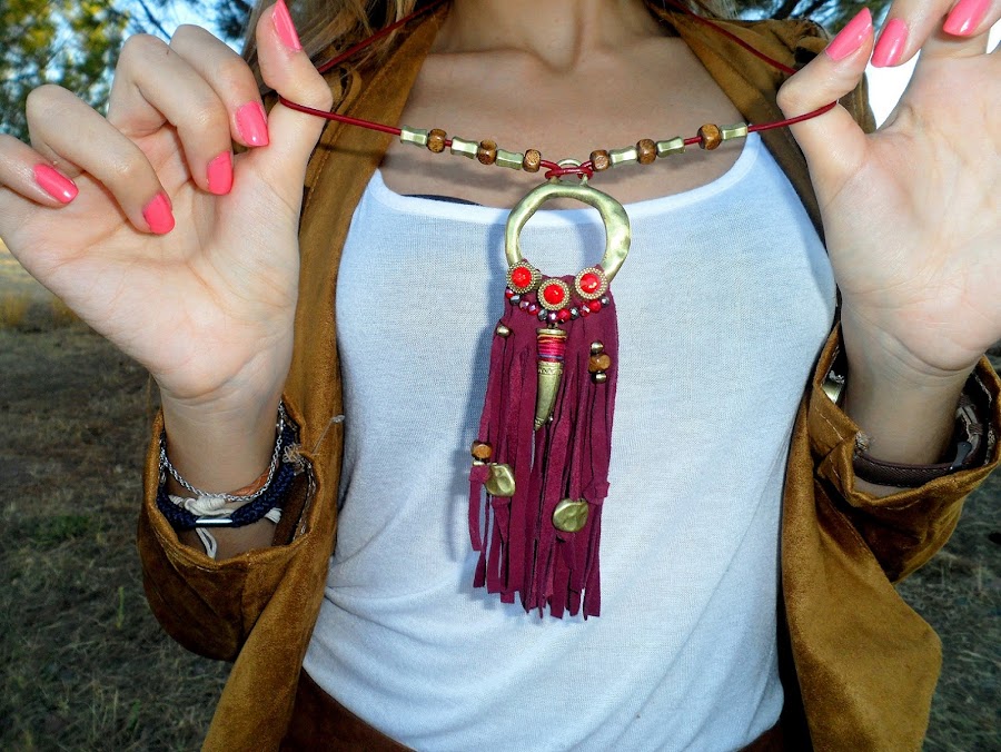 Chic@s, después del fin de semana, hay que empezar la semana con fuerza y por eso, os traigo un nuevo total look de ante. Para el look, he usado unos pantalones con pinzas, que son súper cómodos, ya que son sueltecitos y se adaptan al cuerpo perfectamente. Además, son ideales para el otoño porque son muy calentitos. Lo he combinado con una camiseta básica de color blanco y un collar de flecos burdeos muy original.