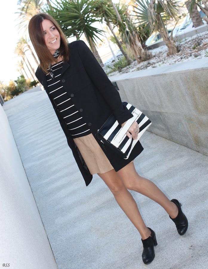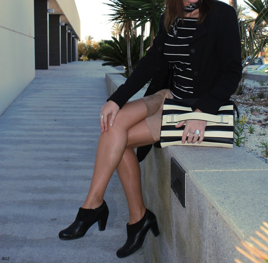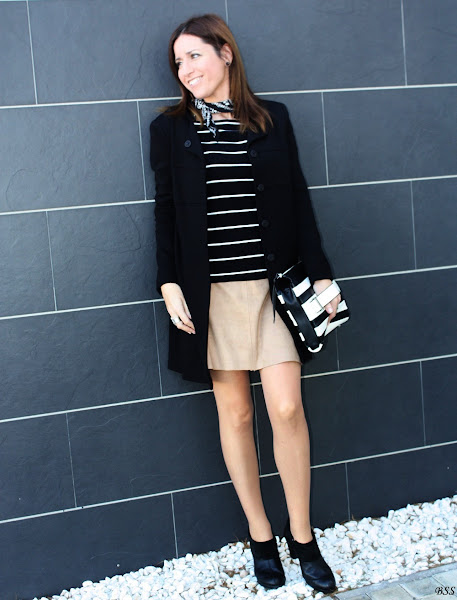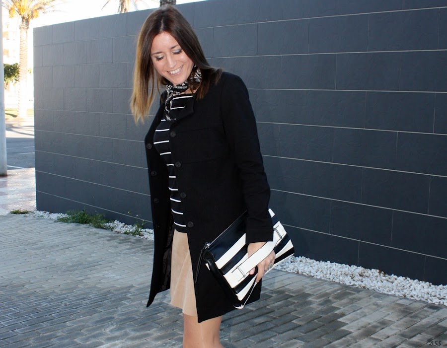 Esta vez serán las rayas las que pongan el contraste junto a un hit, como el pañuelo al cuello,que tanto se ha impuesto esta temporada otoño invierno.
