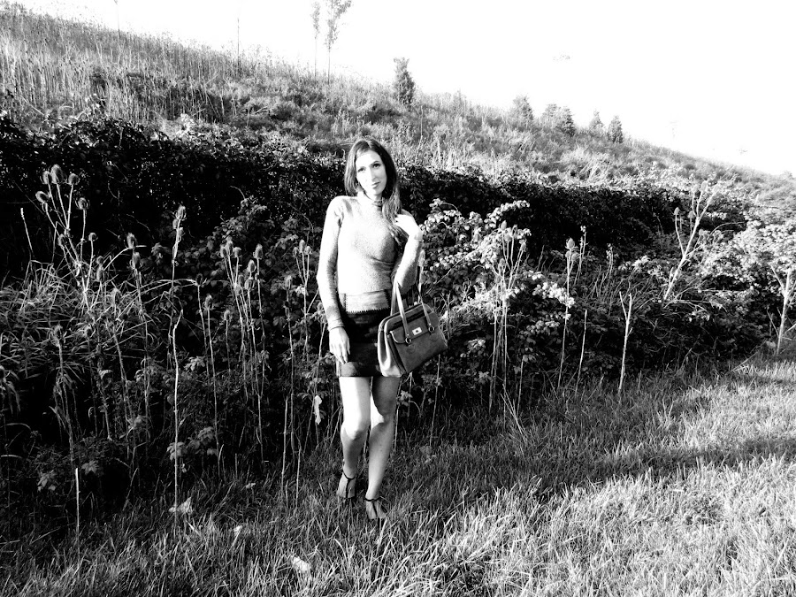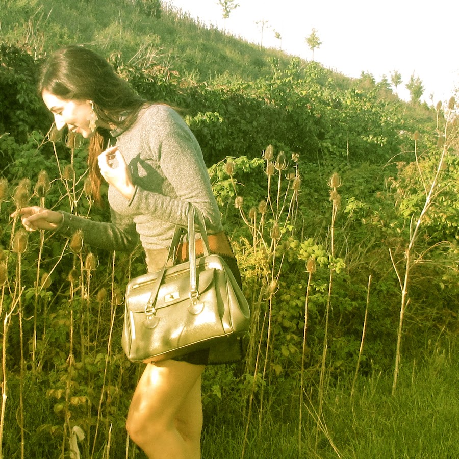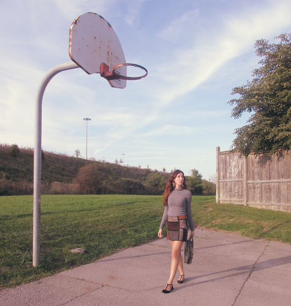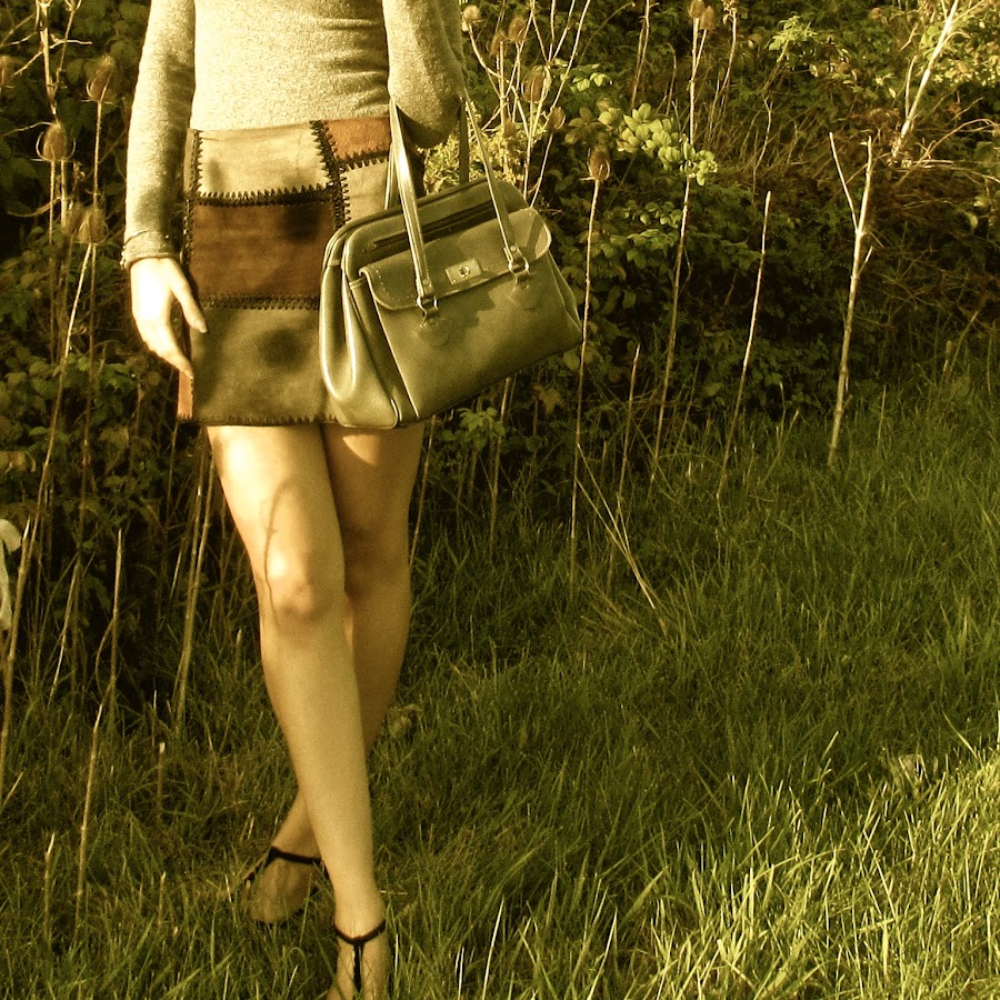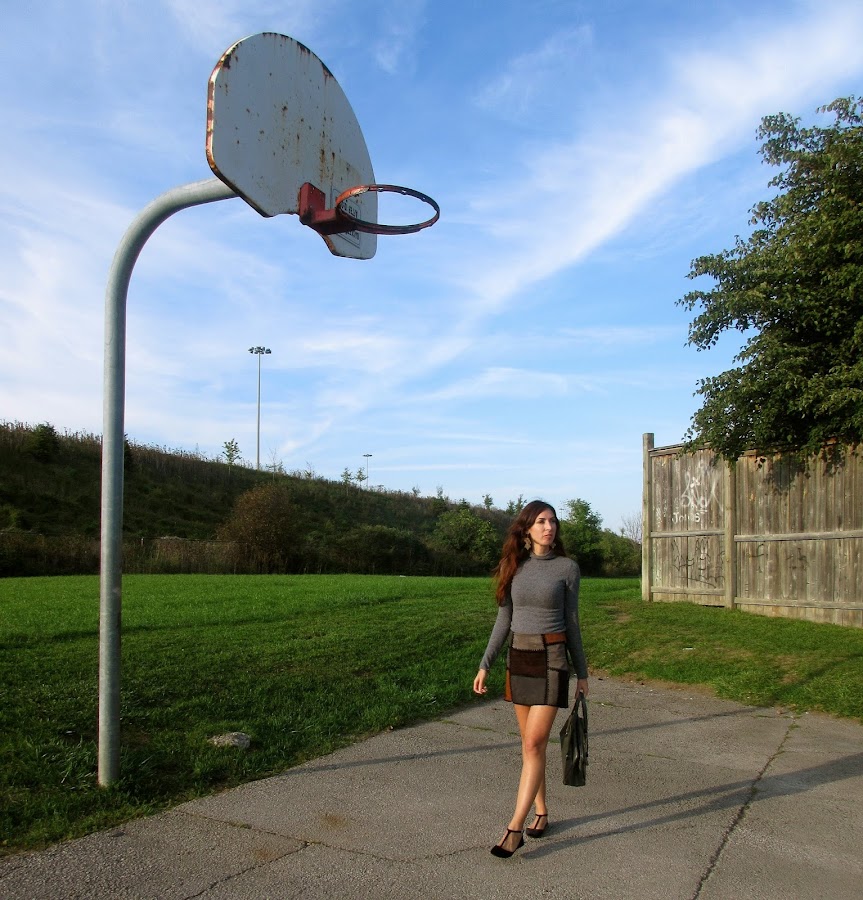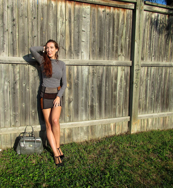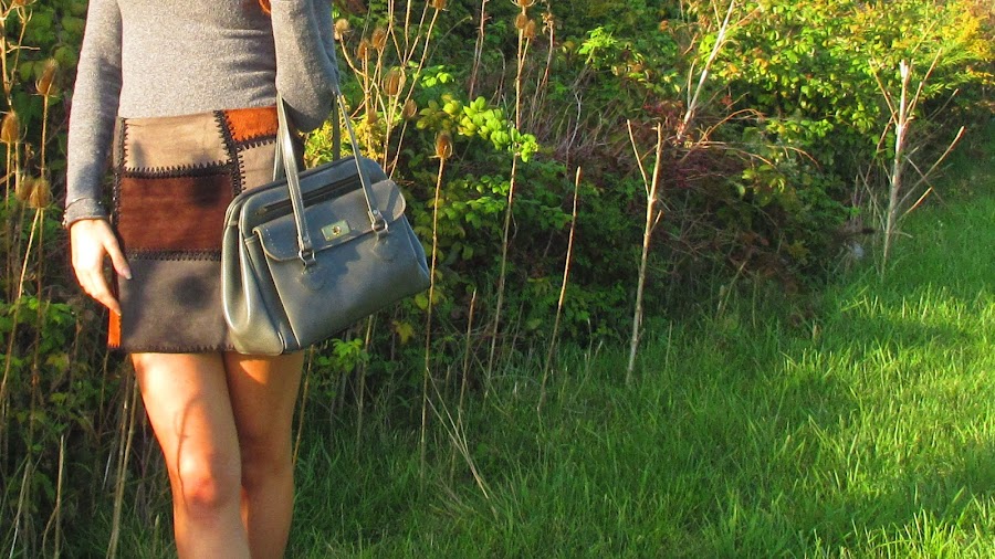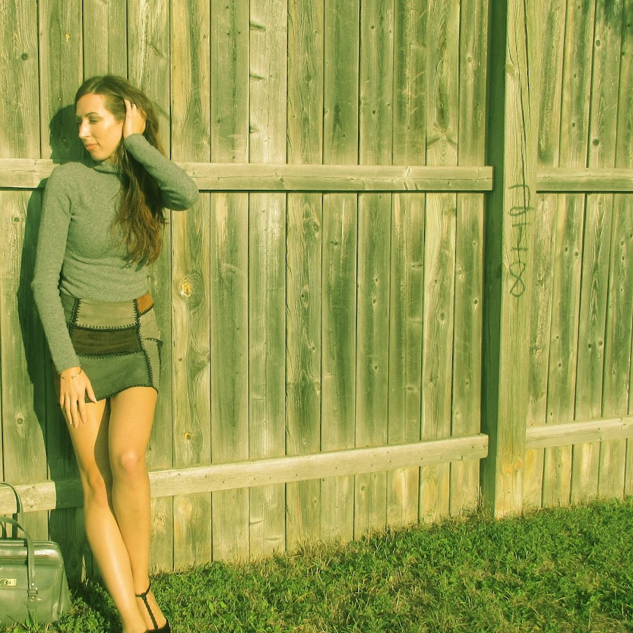 Para terminar mi look necesitaba accesorios y ahí llegó la controversia!; dispongo de unas botas con el tono exacto de mi sweater pero a mi me pareció demasiado conjuntado: jersey gris, bolso gris y botas grises? no me terminaba de convencer, por consecuencia se me ocurrió que añadir mis nuevas bailarinas aterciopeladas le daría un toque muy personal y único, además a mi me encanta!. El trenzado de mi calzado complementa a la unión entre parches de la mini, dando un resultado interesante. No os parece?.