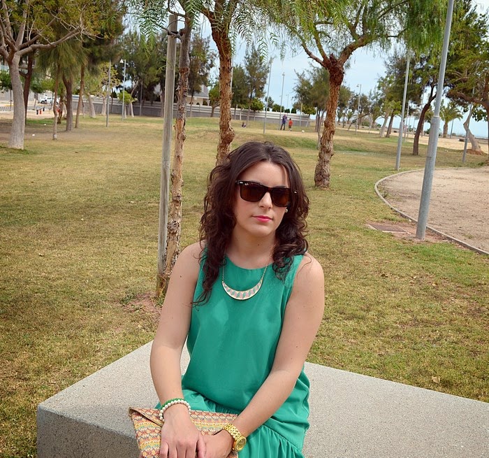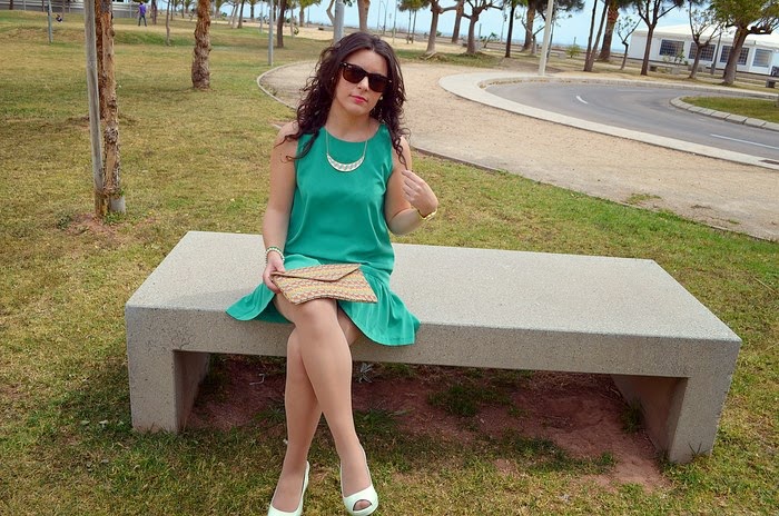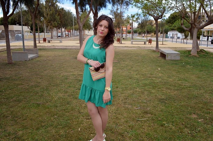 Holaaaa!! Hoy os enseño un look con un vestido del cual me enamoré nada más verlo. Es sencillo pero su color verde alpino y el volante inferior me encantaron ( y digo verde alpino porque es de la misma tonalidad que el verde claro que había en la cajas de lápices de colores de la marca Alpino). Le estoy sacando mucho partido a esta prenda, pues a veces me lo pongo con sandalias planas y otras con tacones. Es un vestido muy cómodo y fresquito para el verano. ¿Os gusta esta tonalidad de verde? ¿Qué os parece el vestido?