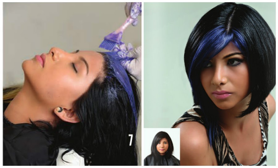 Toma el cromático azul y aplica sobre el cabello. Deja que actúe por 10 minutos y luego enjuaga.