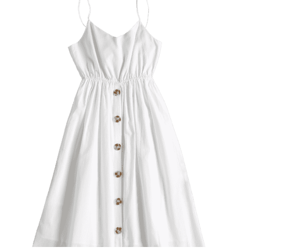 Vestido blanco abotonado y de tirantes, que puedes encontrar AQUÍ:
