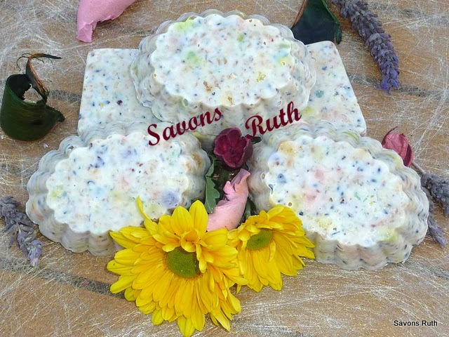 Luego que hacemos nuestra receta y que alcanza una traza mediana no muy liquida no muy espesa, apartamos un poco de esta mezcla una tercera partes mas o menos y al resto añadimos los restos de jabón cortado en trozos muy pequeños mezclamos bien, podemos hacerlo de dos maneras, una en un molde rectangular (madera o silicona) añadimos la mezcla de los restos y encima la mezcla que reservamos y la otra solo utilizamos la mezcla de los restos y lo añadimos en moldes individuales (plástico o silicona)