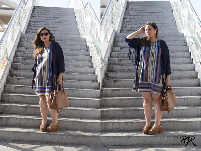 Lo había con otro tipo de dibujos pero este fue mi preferido. Además da bastante talla porque aunque suelo coger siempre la 20, esta vez con una 18 ha sido más que suficiente. Por último, los flecos del kimono me ayudan a crear un estilo fantástico para una tarde de verano muy casual pero con toque de formalidad.