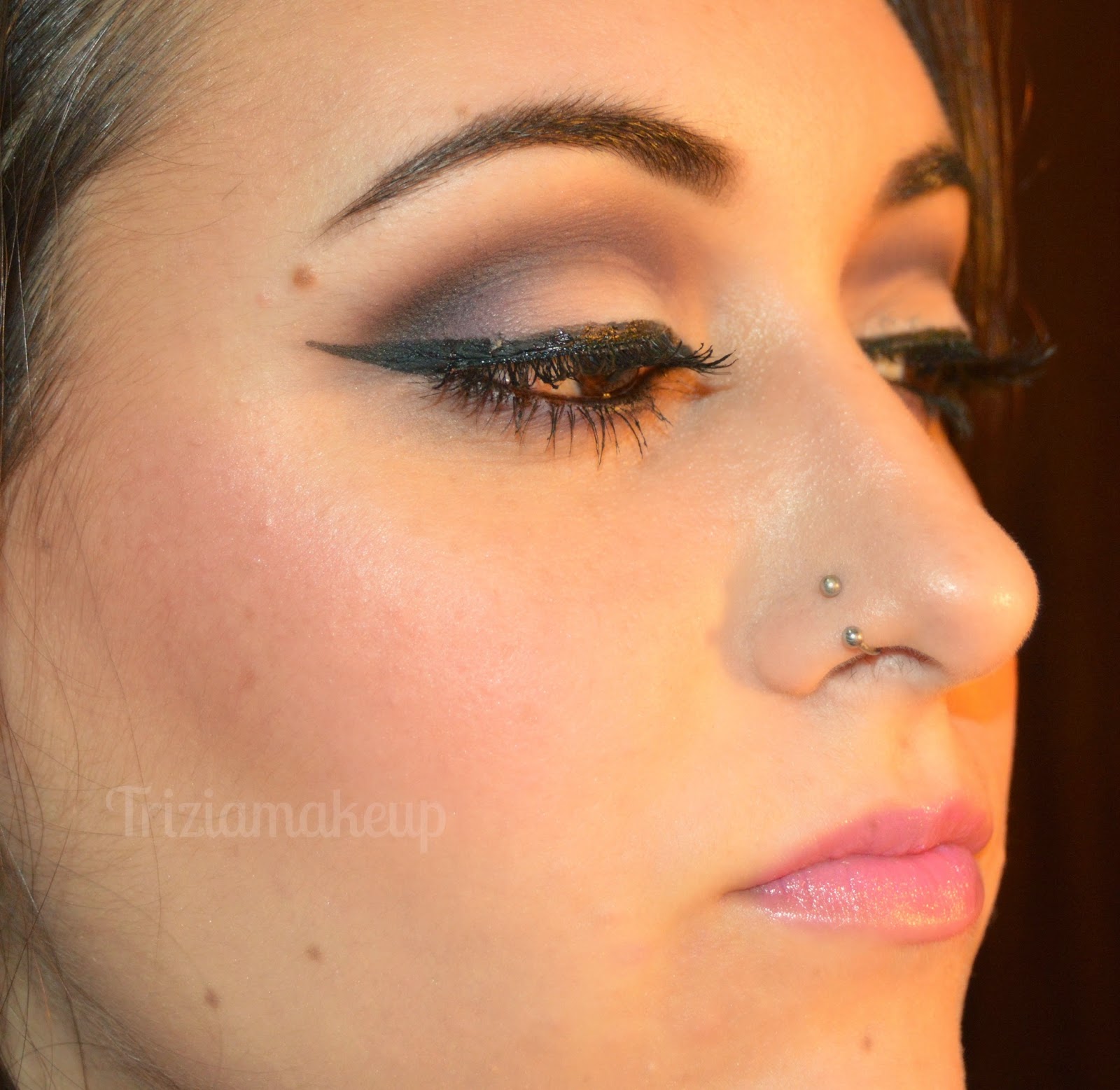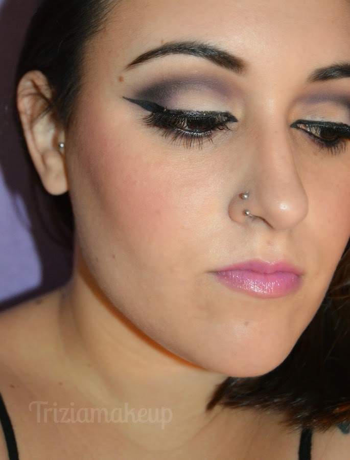 He decidido realizarlo con tonos morados y con un buen delineado en negro y pestañas postizas.