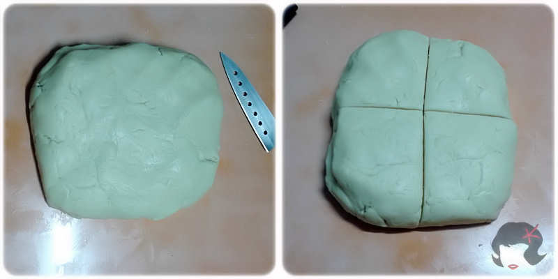 Una vez que ya tenemos la masa lista tratamos de hacer una especie de cuadrado y lo cortamos en cuatro partes.