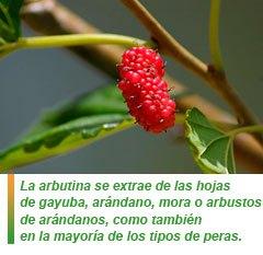 Todas estas plantas contienen arbutina (técnicamente se conoce como la hidroquinona-beta-D-glucósido), que puede inhibir la producción de melanina. Formas puras de arbutina se consideran más potentes para aclarar la piel (alfa-arbutina, betaarbutina y desoxi-arbudina). La arbutina se extrae de las hojas de gayuba, arándano, mora o arbustos de arándanos, como también en la mayoría de los tipos de peras. Este extracto tiene propiedades de inhibición de la melanina.