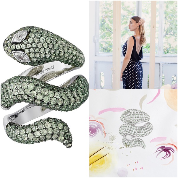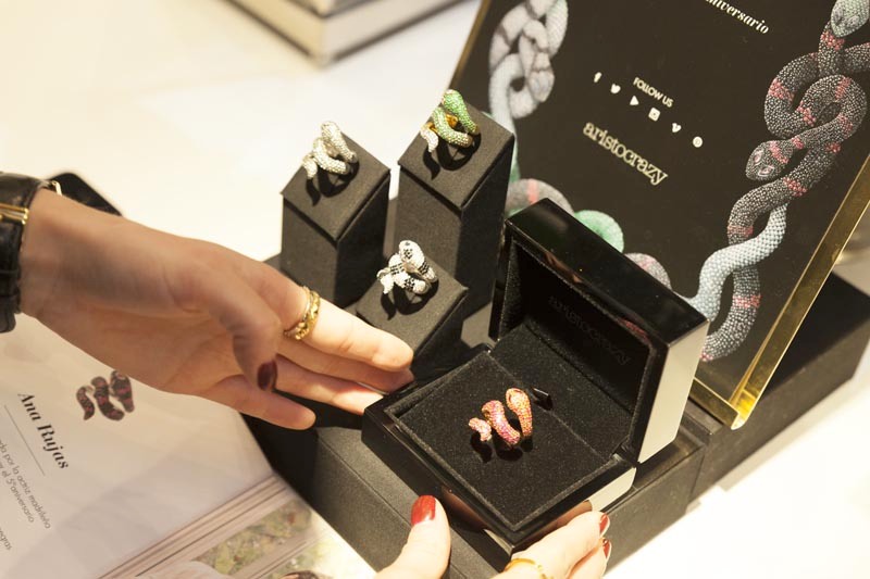 Para celebrar este quinto aniversario Aristocrazy ha realizado una edición especial de su icónica sortija, la serpiente de Aristocrazy, una pieza que forma parte de la colección Savage inspirada en la naturaleza y el mundo animal. Para ello han contado con la colaboración de cinco personalidades del mundo del arte y del diseño, la chef Samantha Vallejo-Nájera, la actriz Ana Rujas, la estilista Bárbara Martelo, el arquitecto e interiorista Lázaro Rosa-Violán y la cantante Russian Red, que han puesto su granito de arena, junto al equipo de Diseño y Producto de la firma, para customizar a su gusto esta sortija.