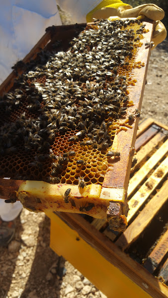 No os asustéis con las fotos de las abejas, que son unos animales súper trabajadores y que hacen una gran labor en el medio ambiente, además, yendo con el traje, tan protegida, parecía que tenía súper poderes y tenerlas tan cerca no asustaba nada, todo lo contrario, fue tan emocionante e interesante verlas y conocer todo lo que nos contaron sobre ellas, que para nada en ningún momento sentí miedo, ni que me iban a picar ni nada por el estilo. Desde aquí os recomiendo que si podéis visitar una colmena, lo hagáis, y si es el de Eco Colmena en la Alcarria mucho mejor, pero vamos, ya veréis como de esa experiencia volvéis con un respeto renovado por las abejas, una admiración absoluta a los apicultores responsables y valorando a tope el tomar miel y jalea real, porque no es nada fácil sacarlo y eso le añade un valor extra al sabor, os lo aseguro.