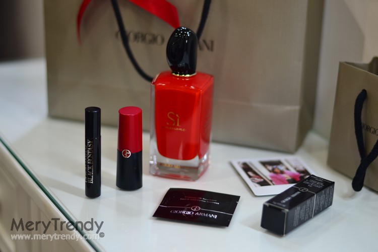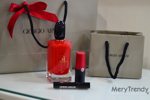 Luego me cogí también su nueva fragancia Sì Passione que seguro identificaréis rápidamente con el sport protagonizado por Cate Blanchett en el que aparece diciendo "Si passione, il nuovo profumo, Giorgio Armani". Bueno, pues que sepáis que huele genial.