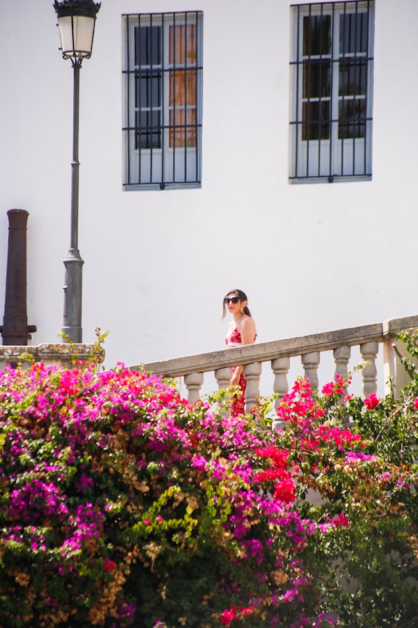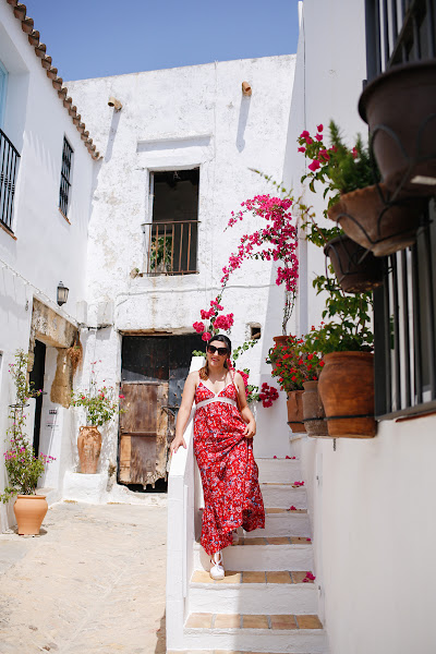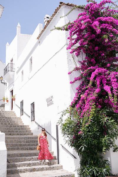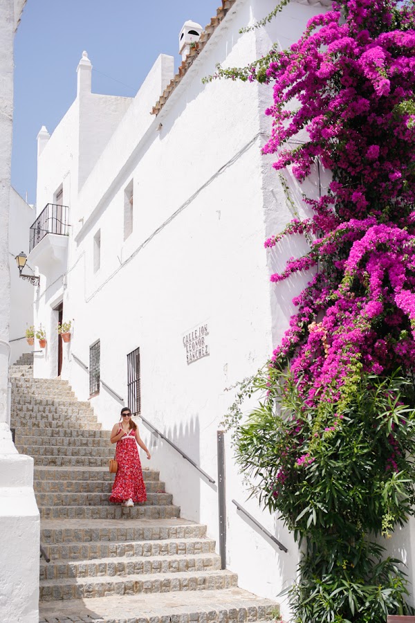 ¡Qué preciosidad de pueblo! Es el típico pueblecito andaluz con casas blancas llenas de buganvilla y calles estrechas donde te perderías durante días. Particularmente, me gustó mucho, aunque reconozco que casi me derrito del calor que hacía ese día (fue el único, todo hay que decirlo). Me encantó que tuviera muuuchas tiendecitas de capazos y artesanía.
