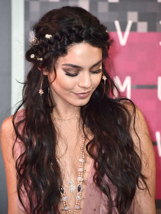 Vannessa Hudgens durante Coachella con sus hoops bohemios.