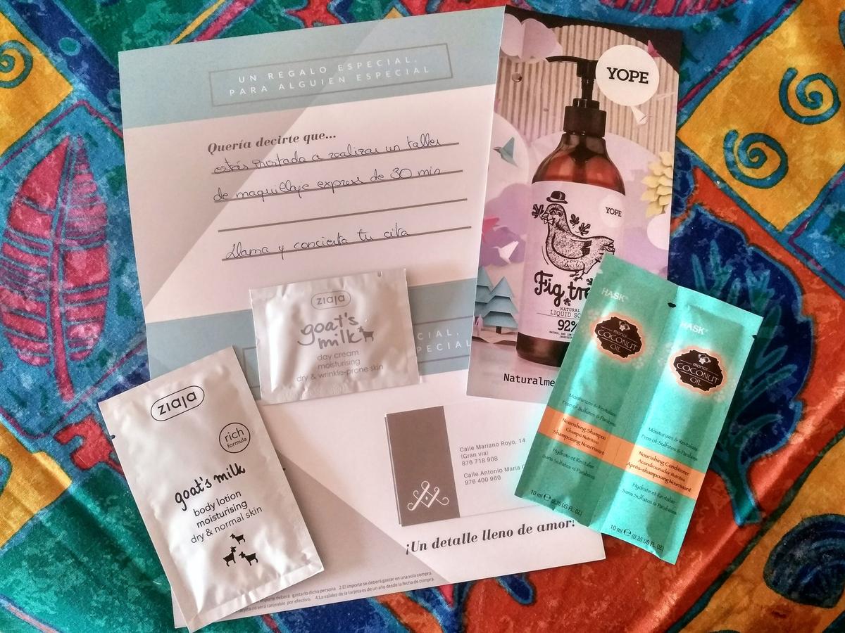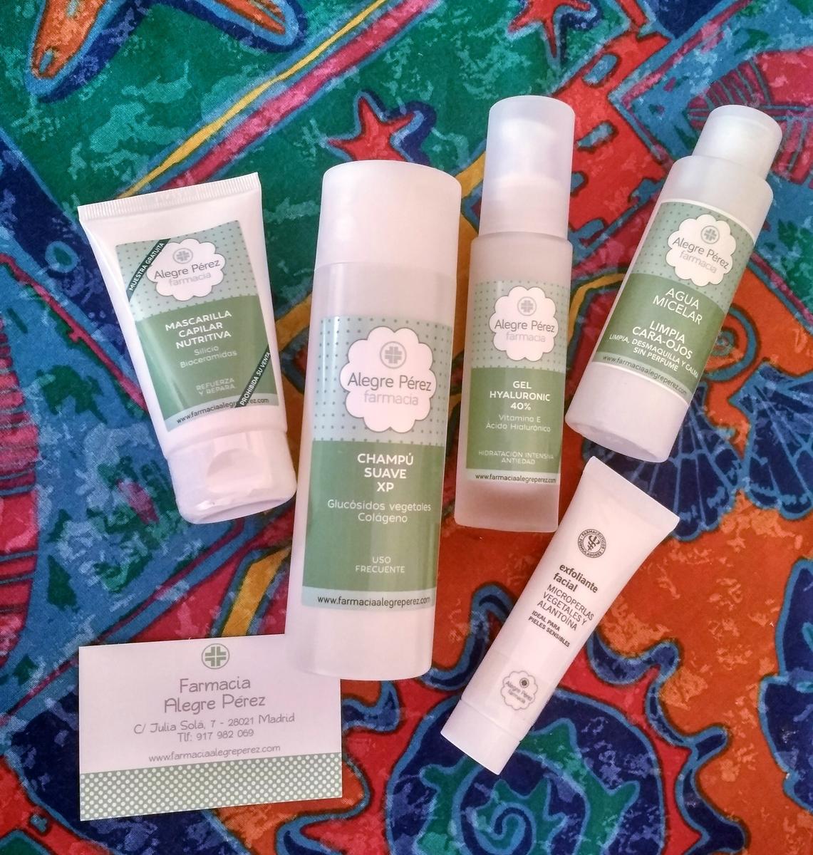 El siguiente regalo fue de la farmacia Alegre Pérez, uno de los más completos: champú suave para cuero cabelludo sensible, mascarilla capilar nutritiva, agua micelar para desmaquillar rostro y ojos, exfoliante con micro piedras vegetales y un gel de hidratación intensiva anti-edad con un 40% de vitamina E y ácido hialurónico. Esta marca está especializada en cuidado capilar, facial y cosmético desde 1968, actualizando continuamente sus productos y realizando también venta online.