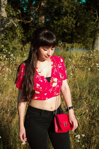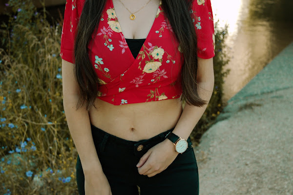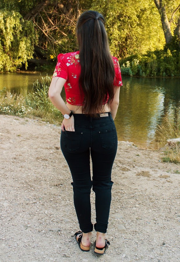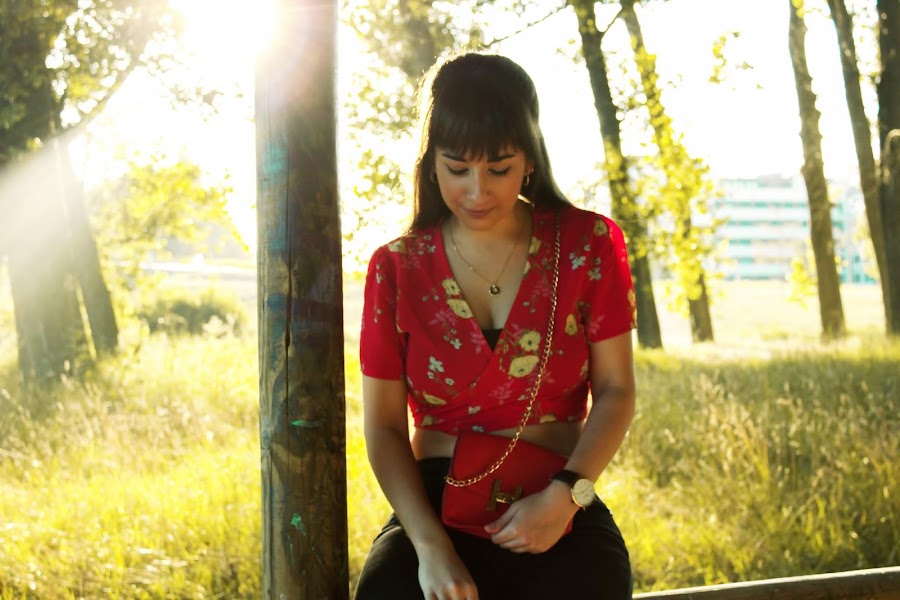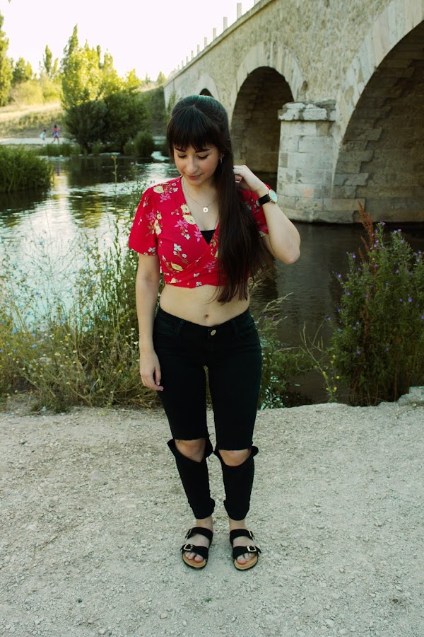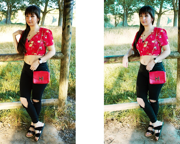 El outfit de hoy es algo más arreglado y con un cierto aire asiático ya que la prenda estrella es el top-kimono de estampado floral de Rosegal. Para darle un toque veraniego lo combiné con unas sandalias conocidas como "ugly shoes" y que ya os enseñé el verano pasado en este outfit. Como complemento y toque de color elegí un bolso pequeño rojo que ya os mostré en otro artículo.