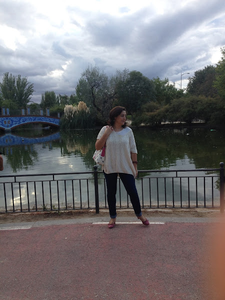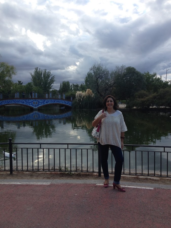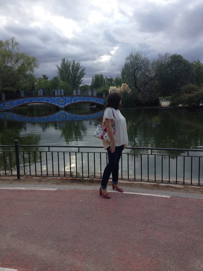 Hoy os muestro un paseo por mi ciudad al atardecer de una tarde de otoño. Un look cómodo para pasear por unos de los jardines de la ciudad donde podéis ver la típica cerámica talaverana en el puente del fondo.
