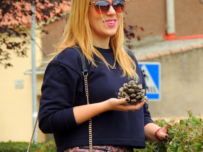 Getting lost among autumn colors of the gardens and parks is amazing in this time, the warm weather allows us play with clothes from differents seasons and to create special looks. One of them is this outfit made with a ethnic skirt and a cropper sweater and chains boots. I wish you like it and have a great week!