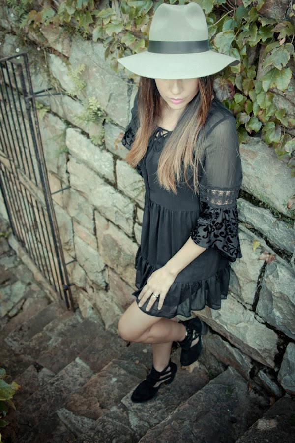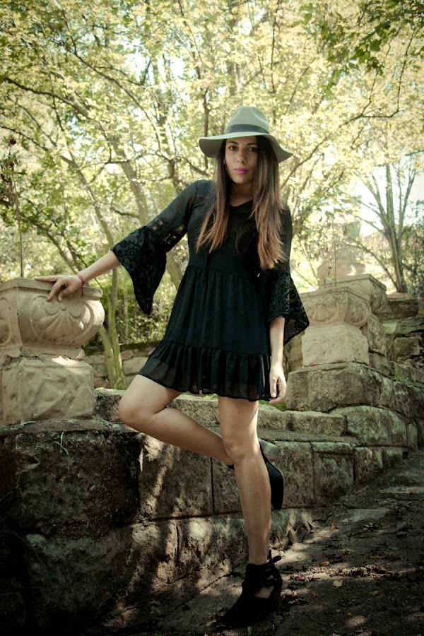 Days of Autumn, a season that I personally like, it"s romantic and nostalgic. Today I have a boho chic look from Top Shop. I love this dress with beautiful details on the sleeves, I style it with a hat which is perfect for these days of chilly but sunny weather.