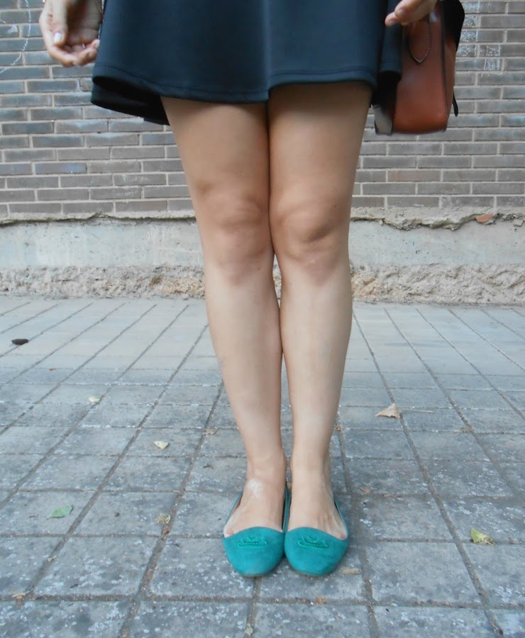Para completar y crear un poco de contraste, le he añadido los zapatos en verde y el collar. Si os fijáis bien, tiene una pequeña tira en azul, jugando a su vez con el negro y el dorado. Si os gusta, podéis encontrarlo en BornPrettyStore.